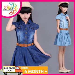 Kids Girls Denim Short Sleeve Dress Denim Skirt 8 12 Yrs Old Kd 001 Shopee Singapore