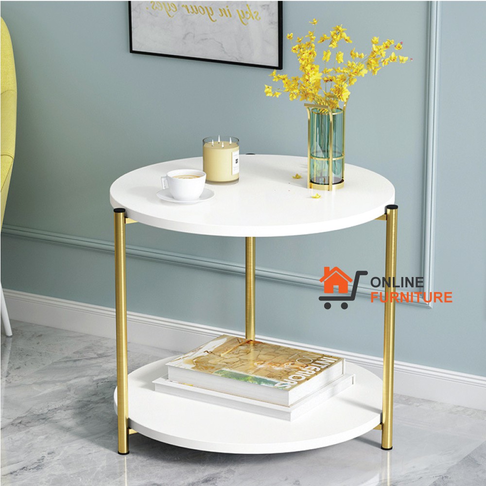 Ready Stock Coffee Table Small Round Side End Table Modern Decor Bedside Table With Gold Metal Legs For Living Shopee Malaysia